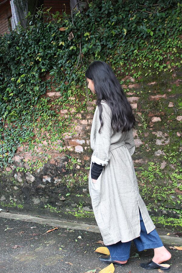 春先や、秋口にさらっと羽織れる軽めのロングコートを仕立てました。