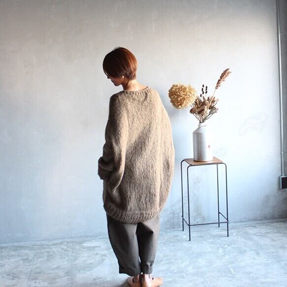 ふんわりと驚くほどに軽いモヘアを使用した手編みのカーディガンです。