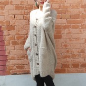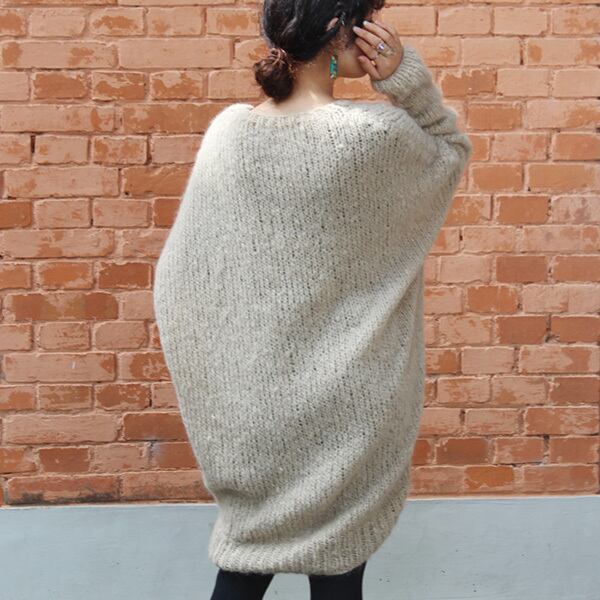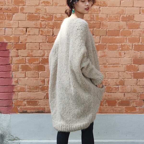 ふんわりと驚くほどに軽いモヘアを使用した手編みのセーターです。