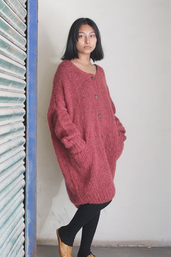 ふんわりと驚くほどに軽いモヘアを使用した手編みのロングカーディガンです。