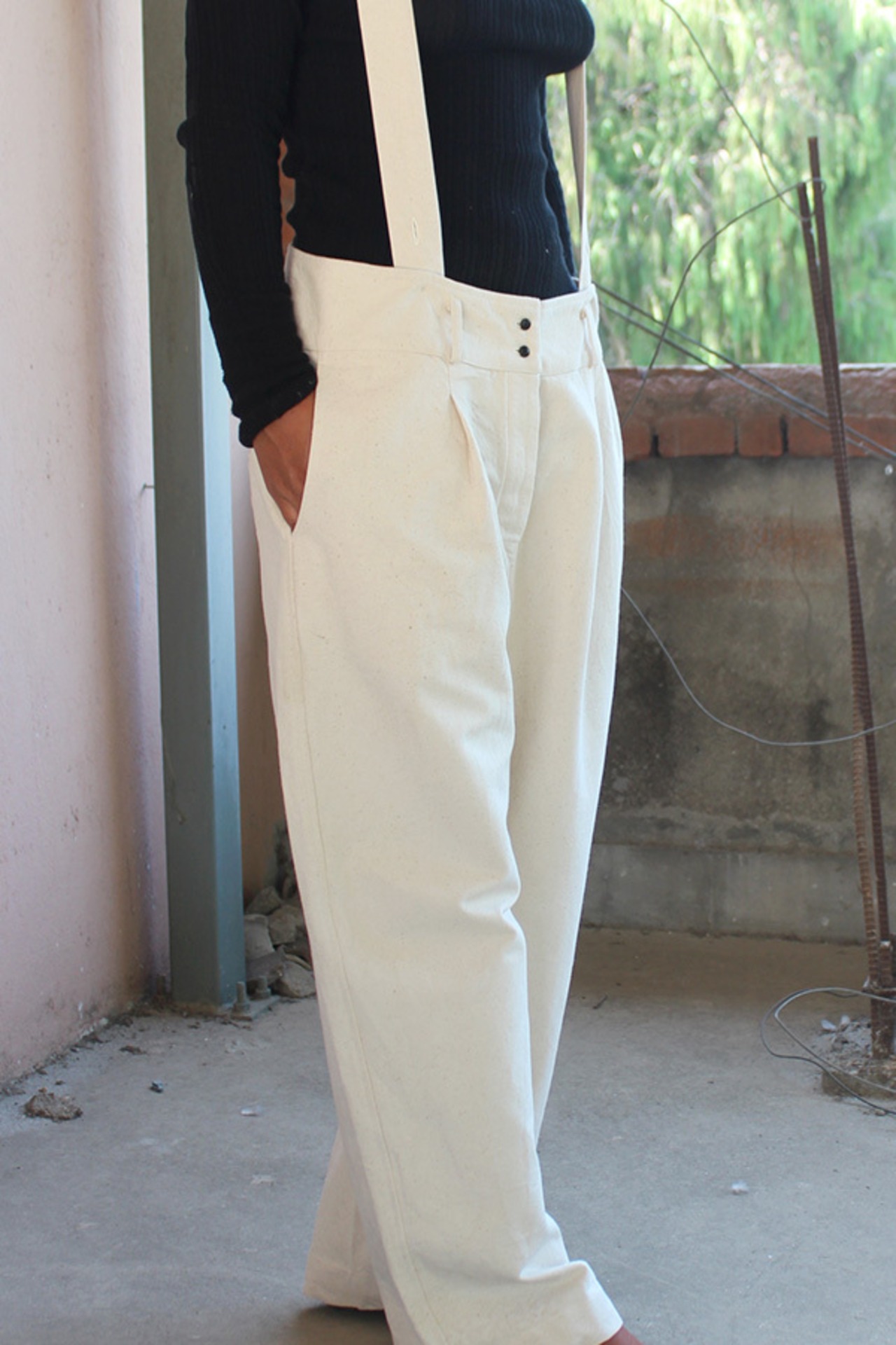 ラインのキレイな大人のサロペットパンツを仕立てました。